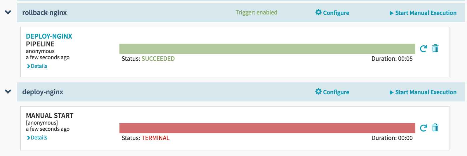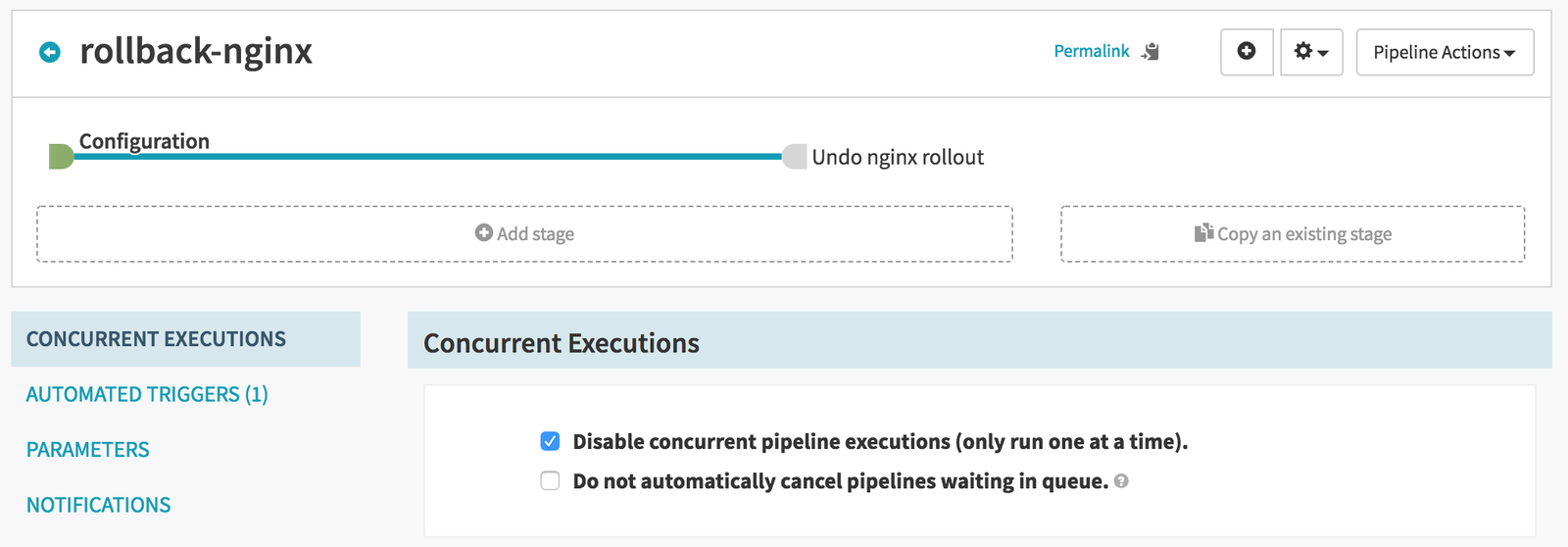 Now we’ll create a rollback pipeline that triggers automatically when deploy-nginx pipeline fails: