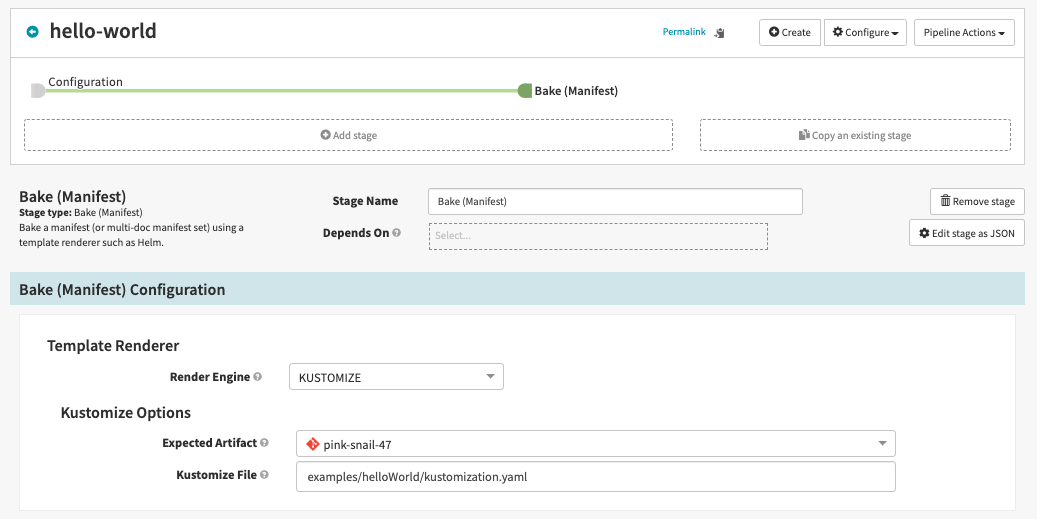 Step 2 - Add a Bake (Manifest) Stage
