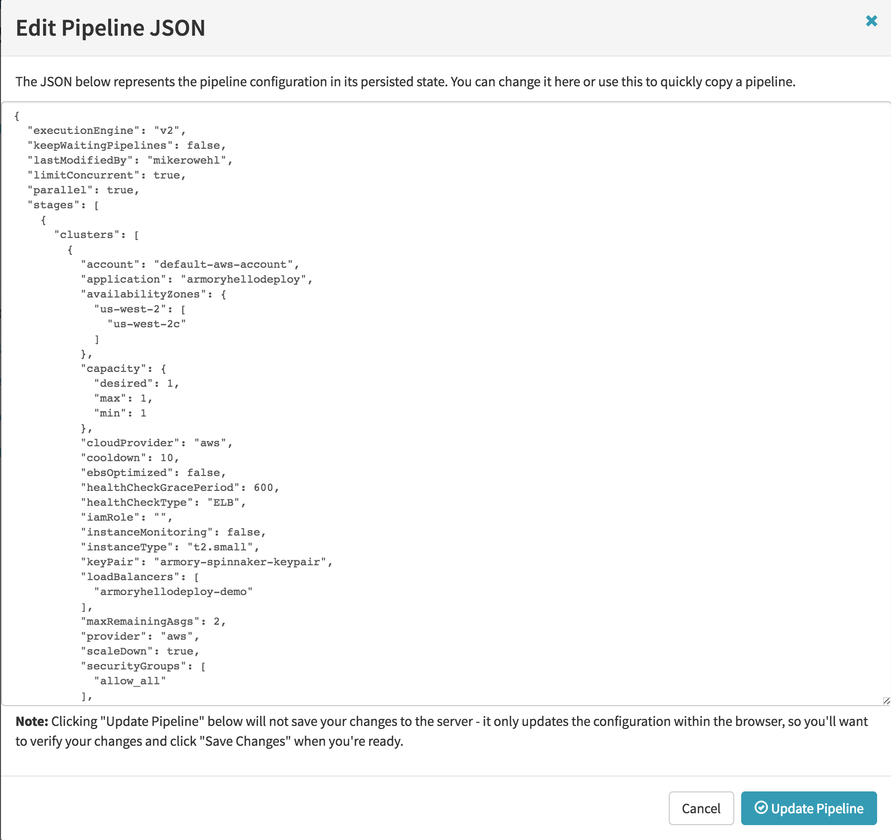 Finally press ‘Update’ to finish. Don’t forget to press ‘Save Changes’ on your pipeline configuration.